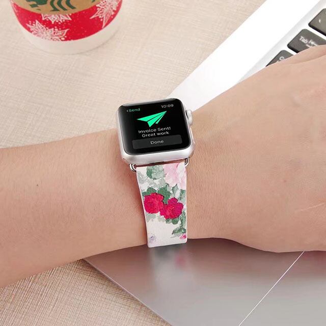 ガーリー 花柄 アップルウォッチ 替えベルト バンド ( ブラック ホワイト イエロー ) フラワー カラフル ★Apple Watch belt 38mm/42mm ★ [NW504]